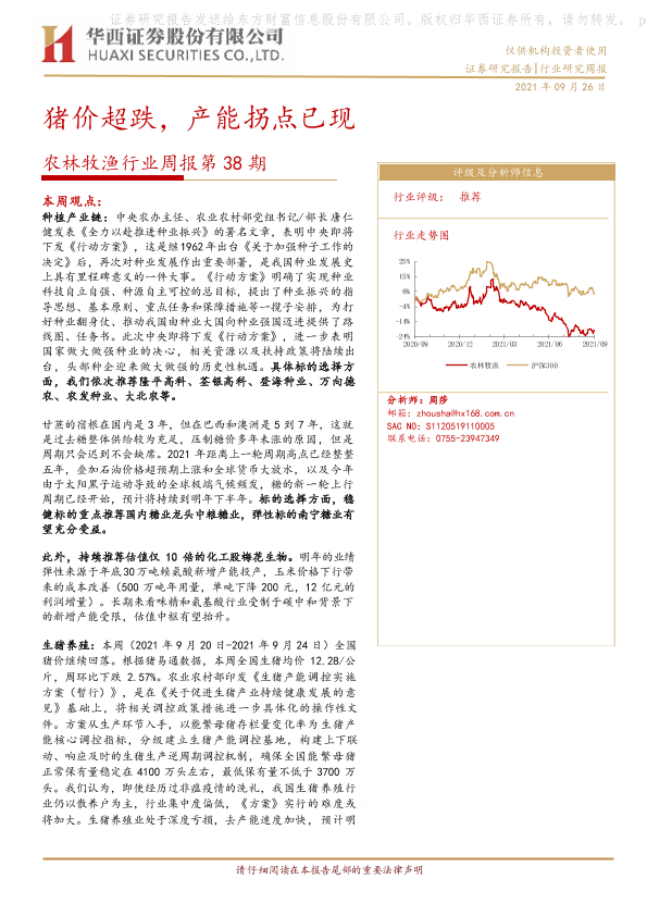 【华西证券】【20210926】农林牧渔行业周报第38期:猪价超跌,产能拐点已现-23页
