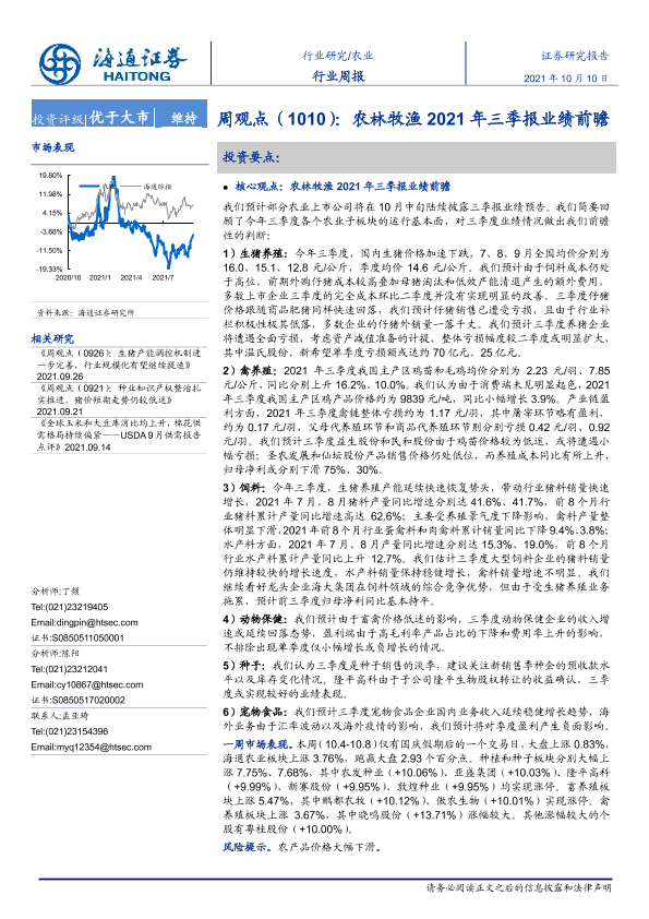 【海通证券】【20211010】农业周观点:农林牧渔2021年三季报业绩前瞻-4页