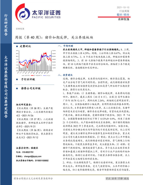 【太平洋证券】【20211010】20211010-太平洋-农林牧渔周报(第40周):猪价如期反弹,关注养殖板块-15页