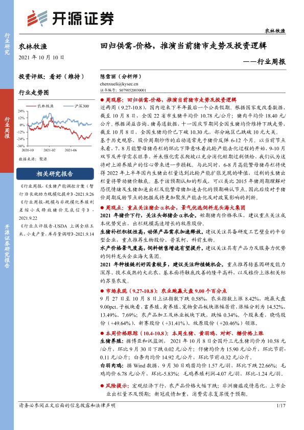 【开源证券】【20211010】农林牧渔行业周报:回归供需-价格,推演当前猪市走势及投资逻辑-17页