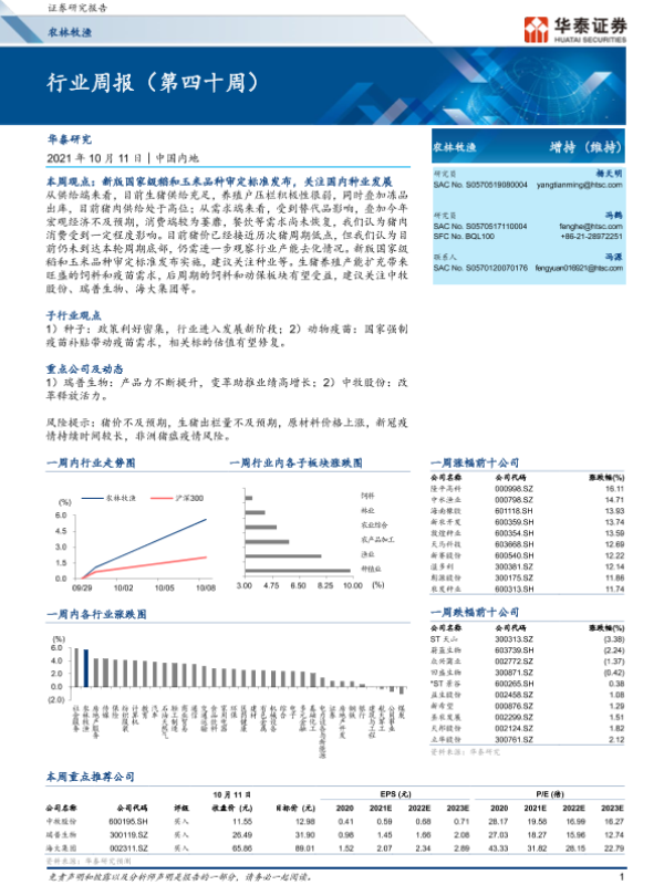 【华泰证券】【20211011】20211011-华泰证券-农林牧渔行业周报(第四十周)-18页