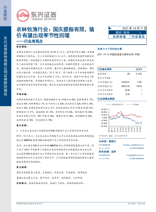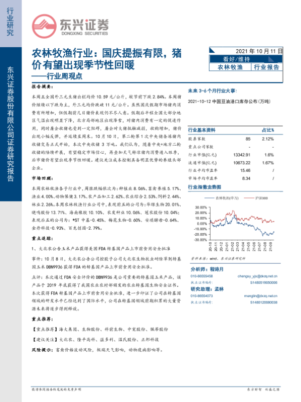 【东兴证券】【20211011】农林牧渔行业:国庆提振有限,猪价有望出现季节性回暖-13页