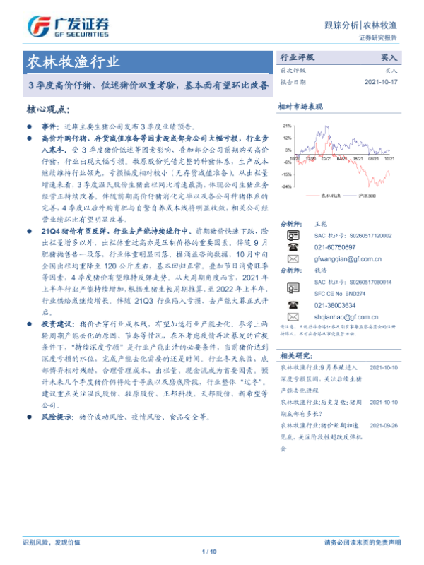 【广发证券】【20211017】农林牧渔行业:3季度高价仔猪、低迷猪价双重考验,基本面有望环比改善-10页