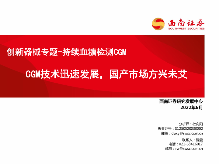 【西南证券】【20220602】医疗器械行业创新器械专题_持续血糖检测CGM:CGM技术迅速发展,国产市场方兴未艾-69页