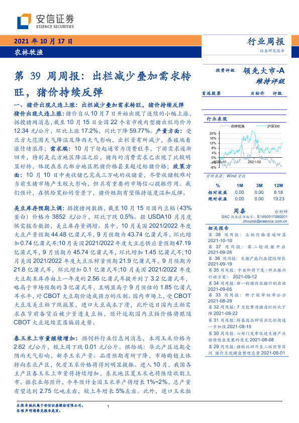 【安信证券】【20211017】20211017-安信证券-农林牧渔第39周周报:出栏减少叠加需求转旺,猪价持续反弹-22页