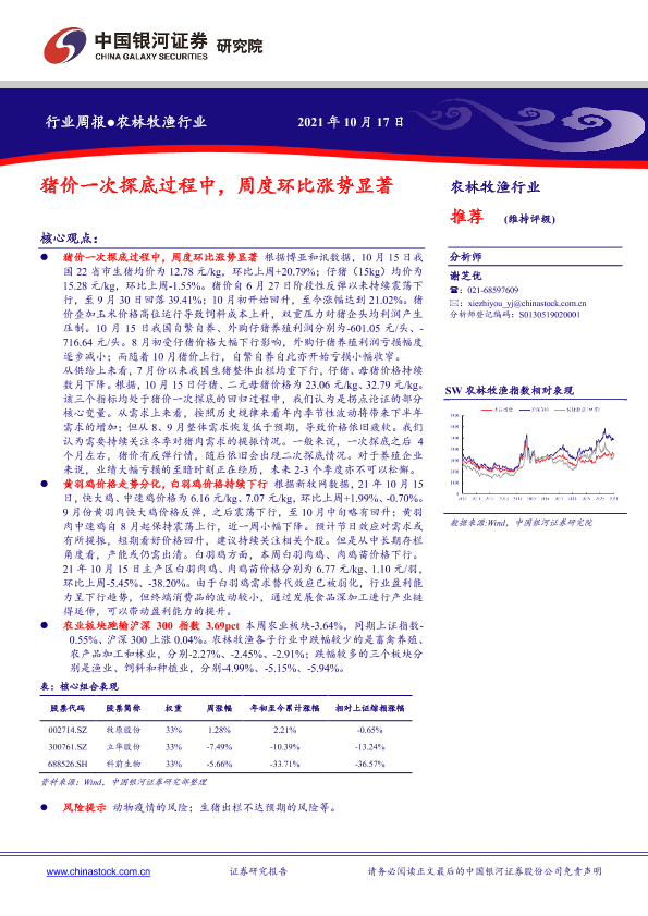 【银河证券】【20211017】20211017-中国银河-农林牧渔行业周报:猪价一次探底过程中,周度环比涨势显著-20页