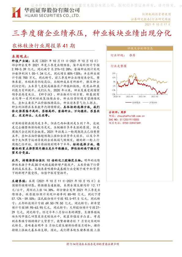 【华西证券】【20211017】农林牧渔行业周报第41期:三季度猪企业绩承压,种业板块业绩出现分化-23页