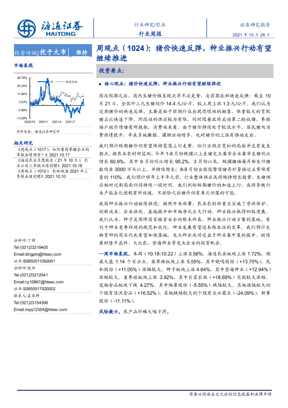 【海通证券】【20211024】20211024-海通证券-农业周观点:猪价快速反弹,种业振兴行动有望继续推进-4页