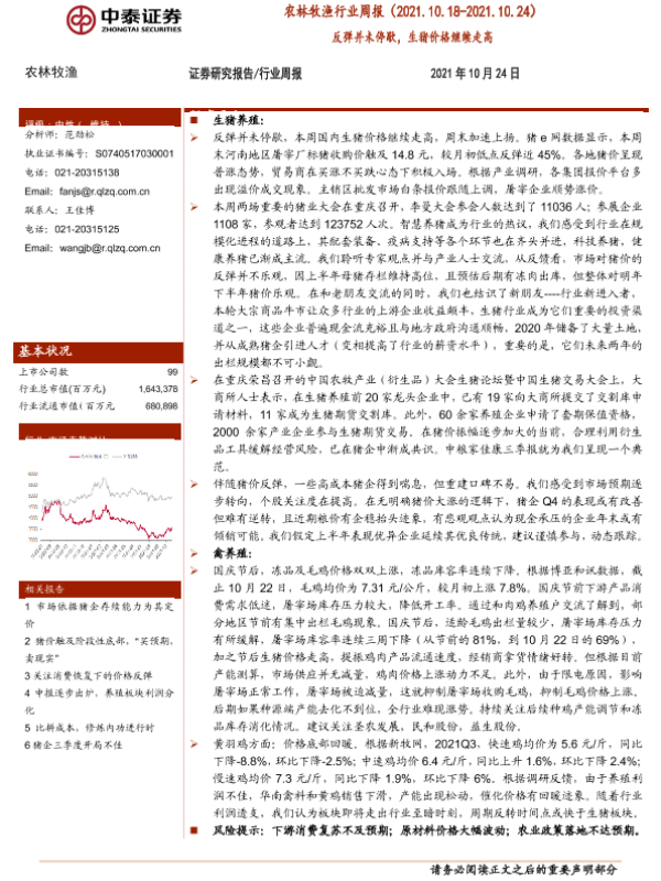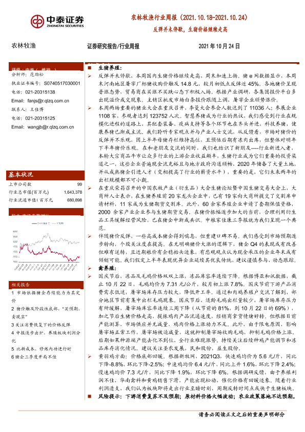 【中泰证券】【20211024】20211024-中泰证券-农林牧渔行业周报:反弹并未停歇,生猪价格继续走高-16页