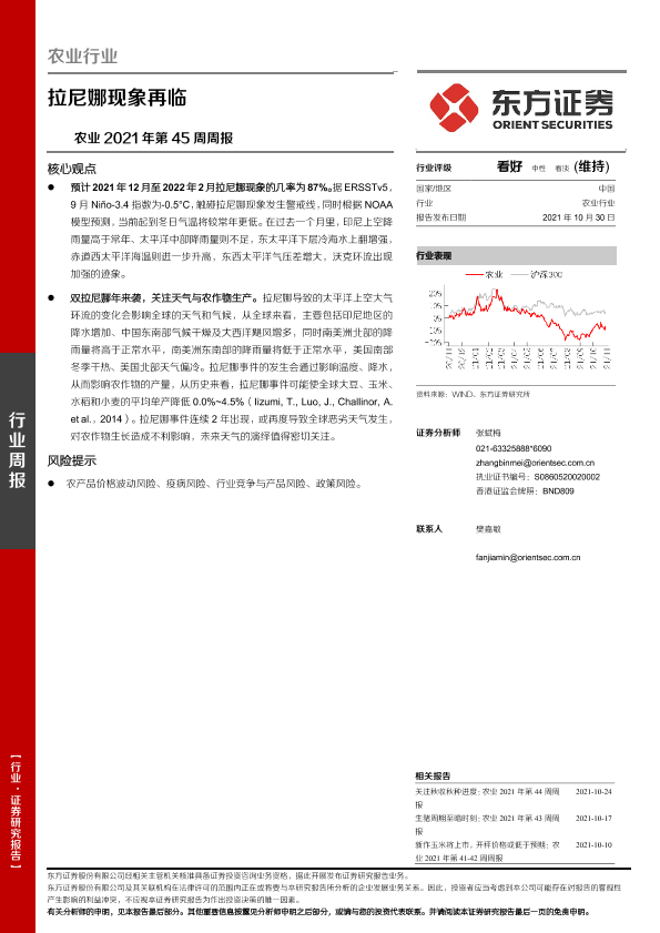 【东方证券】【20211030】农业2021年第45周周报:拉尼娜现象再临-8页