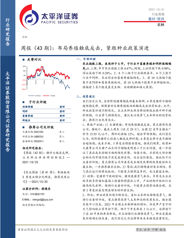 【太平洋证券】【20211031】农林周报(43期):布局养殖触底反击,紧跟种业政策演进-16页