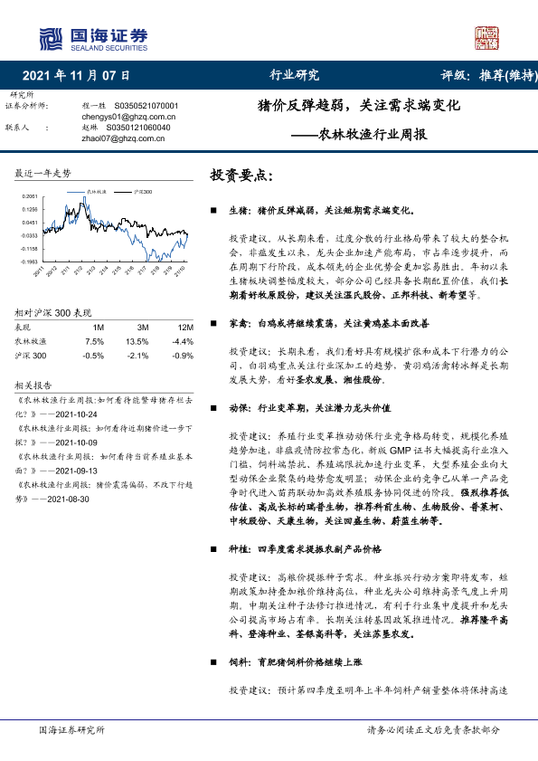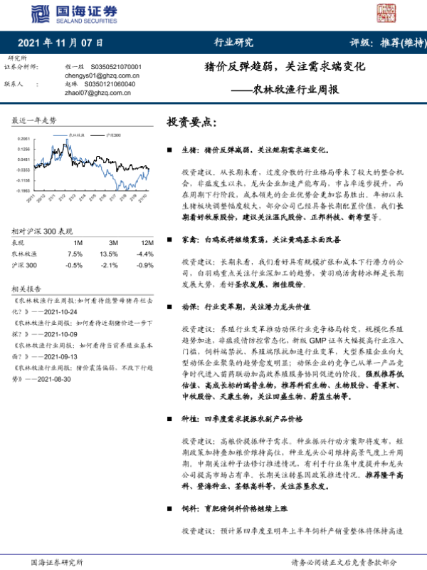【国海证券】【20211107】20211107-国海证券-农林牧渔行业周报:猪价反弹趋弱,关注需求端变化-22页