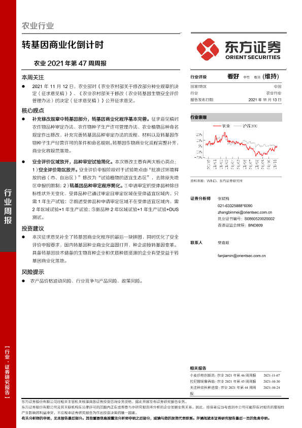 【东方证券】【20211113】农业2021年第47周周报:转基因商业化倒计时-8页
