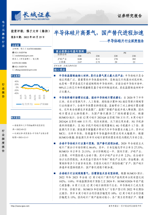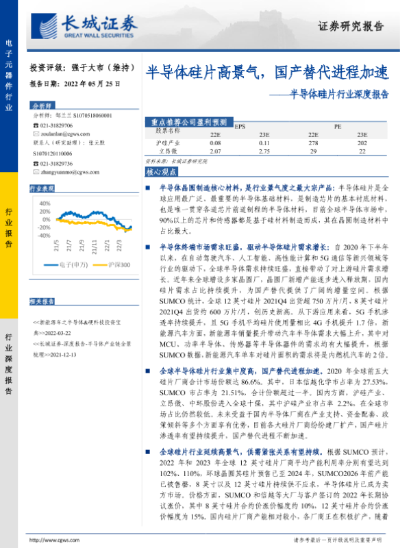 半导体 国产替代 硅片 长城证券 高景气