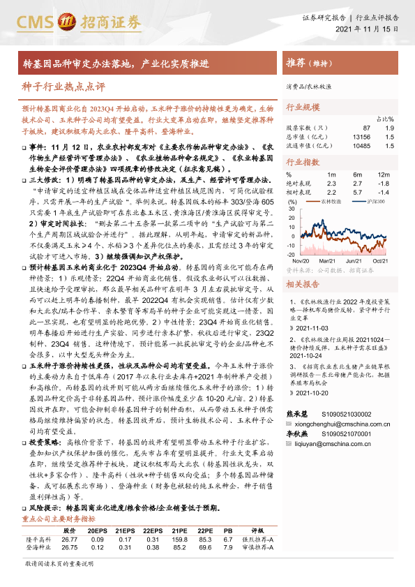 【海通证券】【20211115】种子行业热点点评:转基因品种审定办法落地,产业化实质推进-5页