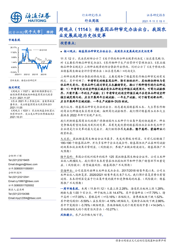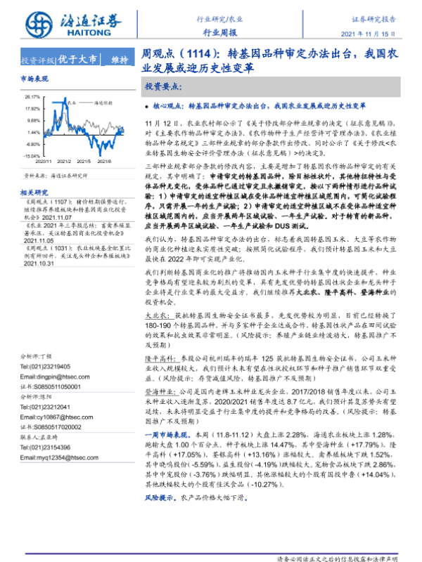 【海通证券】【20211115】20211115-海通证券-农业周观点(1114):转基因品种审定办法出台,我国农业发展或迎历史性变革-5页