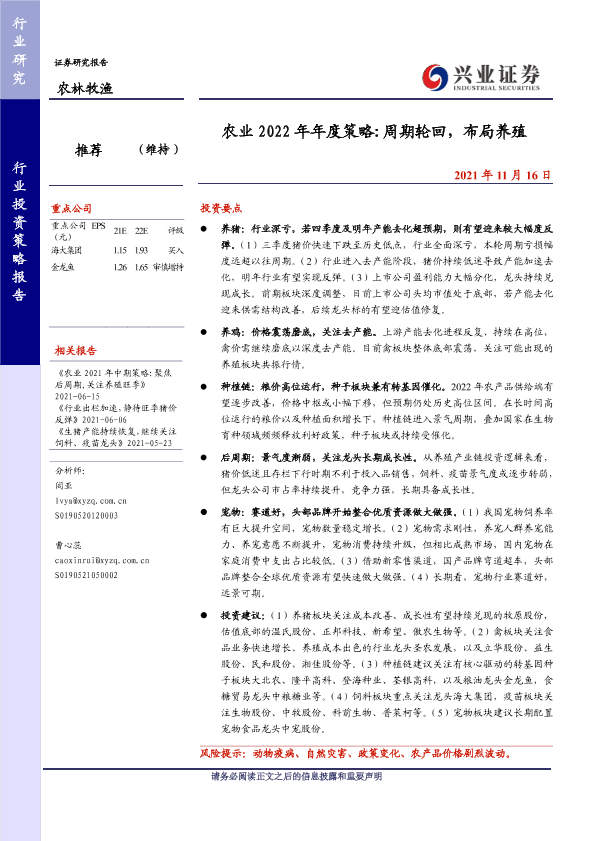 【兴业证券】【20211116】农业2022年年度策略 周期轮回,布局养殖-32页