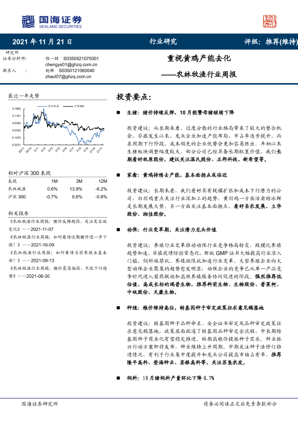 【国海证券】【20211121】农林牧渔行业周报:重视黄鸡产能去化-21页