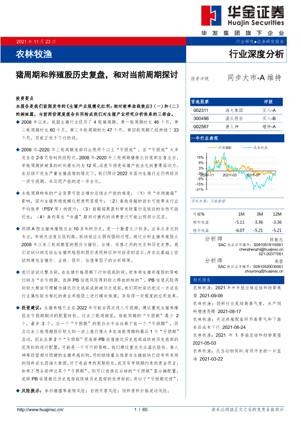 【华金证券】【20211123】20211123-华金证券-农林牧渔行业深度分析:猪周期和养殖股历史复盘,和对当前周期探讨-60页