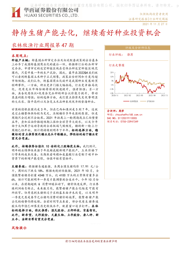 【华西证券】【20211127】农林牧渔行业周报第47期:静待生猪产能去化,继续看好种业投资机会-23页