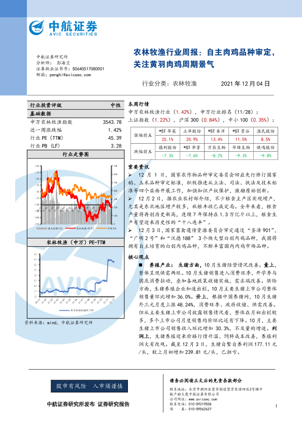 【中航证券】【20211204】农林牧渔行业周报:自主肉鸡品种审定,关注黄羽肉鸡周期景气-11页