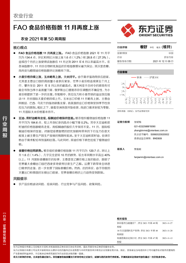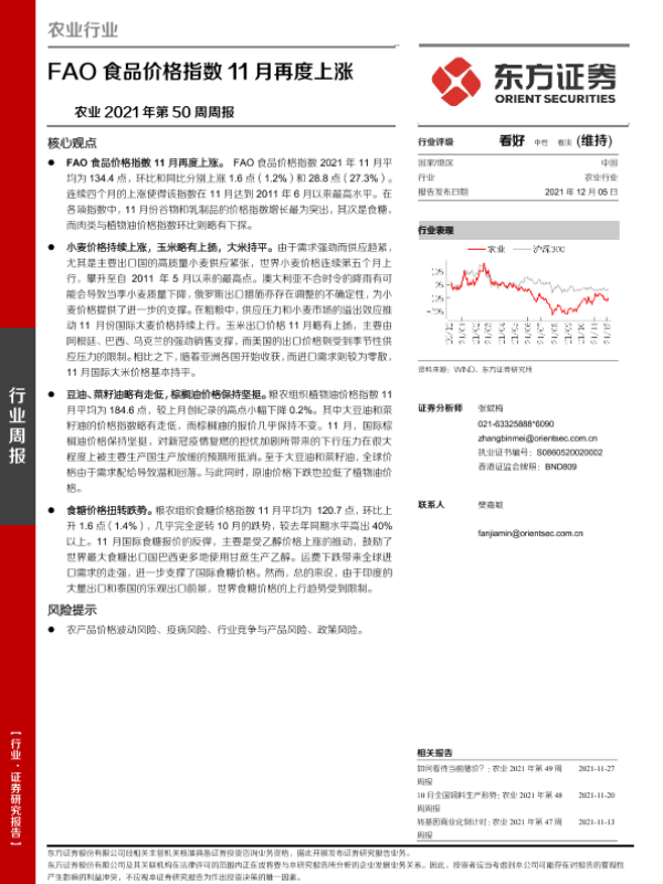 【东方证券】【20211205】农业2021年第50周周报:FAO食品价格指数11月再度上涨-10页