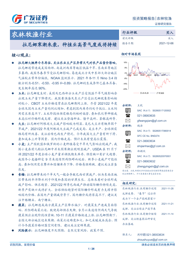 【广发证券】【20211206】农林牧渔行业:拉尼娜寒潮来袭,种植业高景气度或将持续-26页