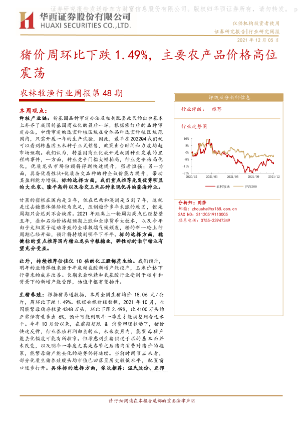 【华西证券】【20211205】农林牧渔行业周报第48期:猪价周环比下跌1.49%,主要农产品价格高位震荡-23页