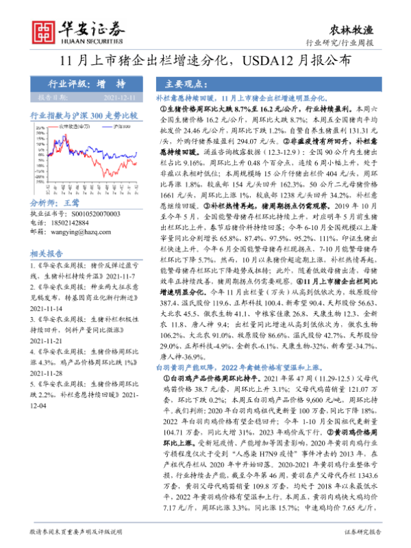 【华安证券】【20211211】20211211-华安证券-农林牧渔行业周报:11月上市猪企出栏增速分化,USDA12月报公布-42页