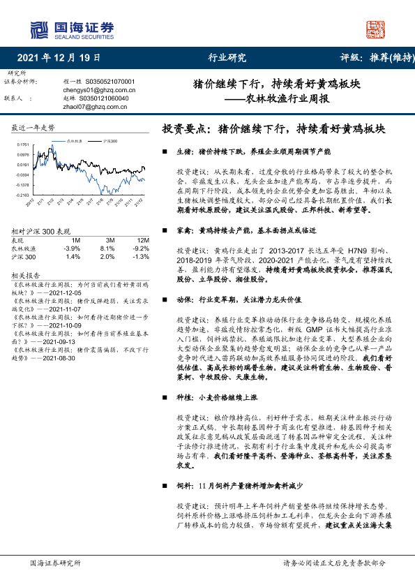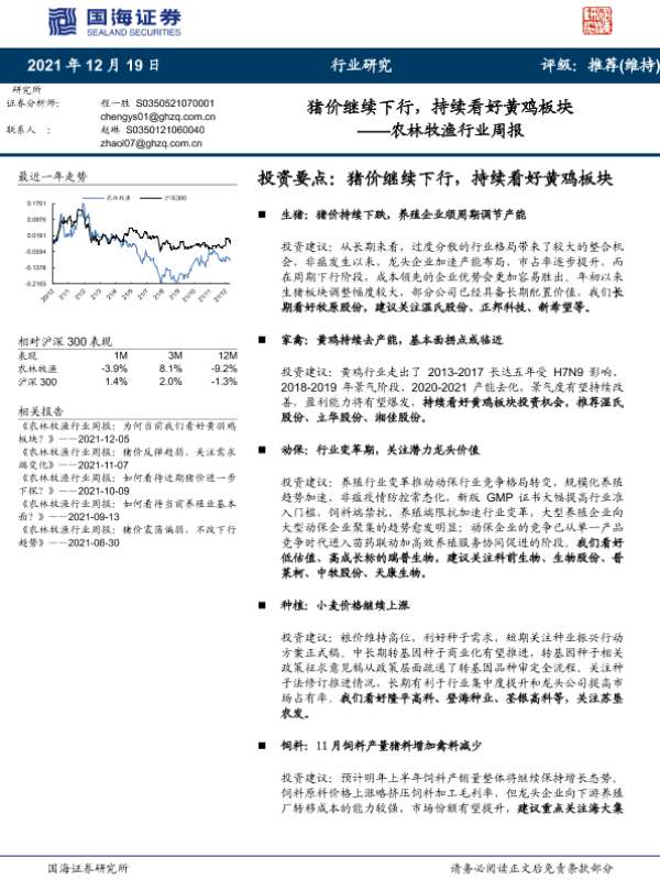 【国海证券】【20211219】20211219-国海证券-农林牧渔行业周报:猪价继续下行,持续看好黄鸡板块-20页