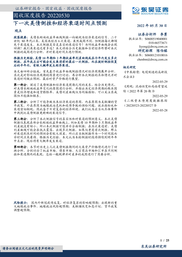 【东吴证券】【20220530】固收深度报告:下一次美债倒挂和经济衰退时间点预测-25页