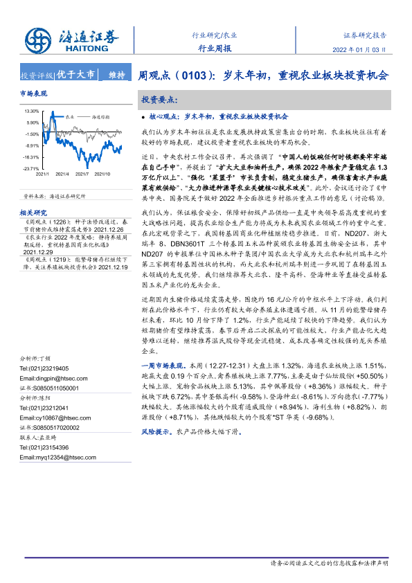【海通证券】【20220103】20220103-海通证券-农业周观点:岁末年初,重视农业板块投资机会-4页