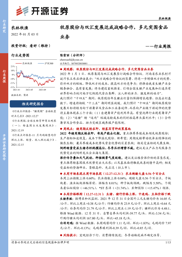 【开源证券】【20220103】农林牧渔行业周报:牧原股份与双汇发展达成战略合作,多元突围食品业务-15页