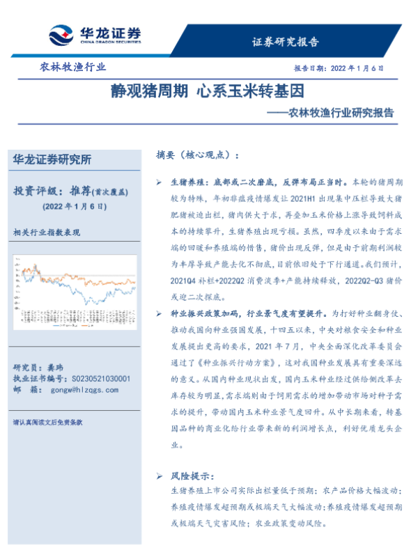 【华龙证券】【20220106】20220106-华龙证券-农林牧渔行业研究报告:静观猪周期 心系玉米转基因-25页