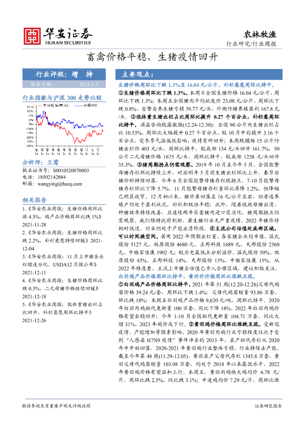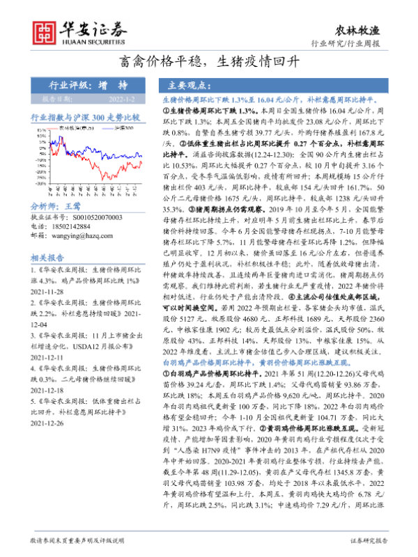 【华安证券】【20220102】20220102-华安证券-农林牧渔行业周报:畜禽价格平稳,生猪疫情回升-40页