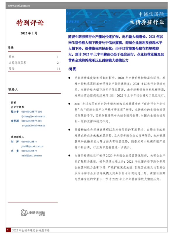 【中诚信国际】【202201】20220126-中诚信国际-生猪养殖行业特别评论-13页