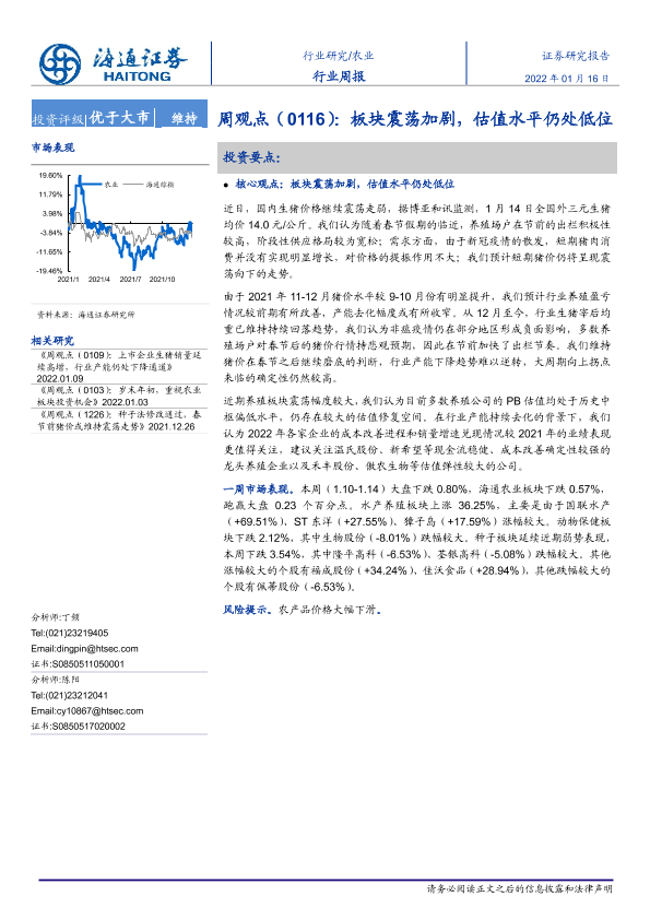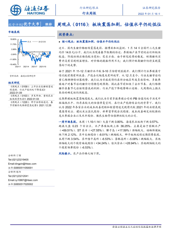 【海通证券】【20220116】20220116-海通证券-农业周观点(0116):板块震荡加剧,估值水平仍处低位-5页