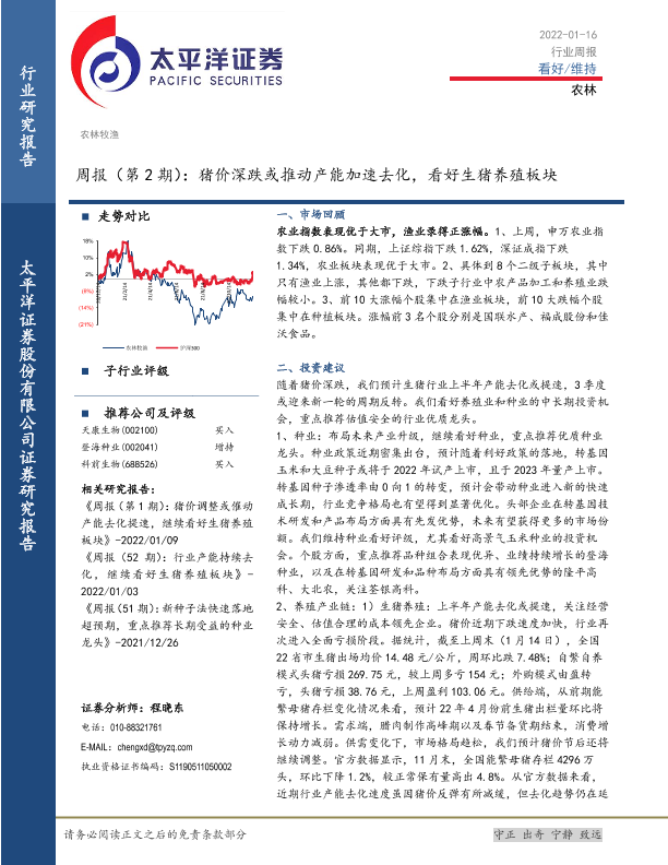 【太平洋证券】【20220116】农林周报(第2期):猪价深跌或推动产能加速去化,看好生猪养殖板块-16页