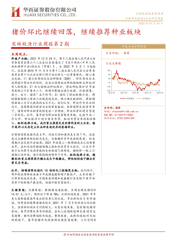 【华西证券】【20220116】20220116-华西证券-农林牧渔行业周报第2期:猪价环比继续回落,继续推荐种业板块-23页