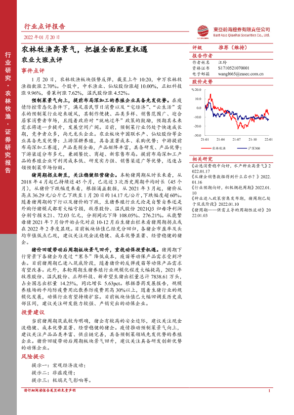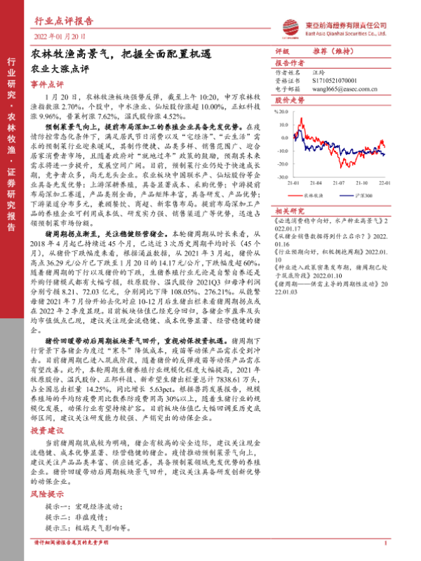 【东亚前海证券】【20220120】农业大涨点评:农林牧渔高景气,把握全面配置机遇-3页