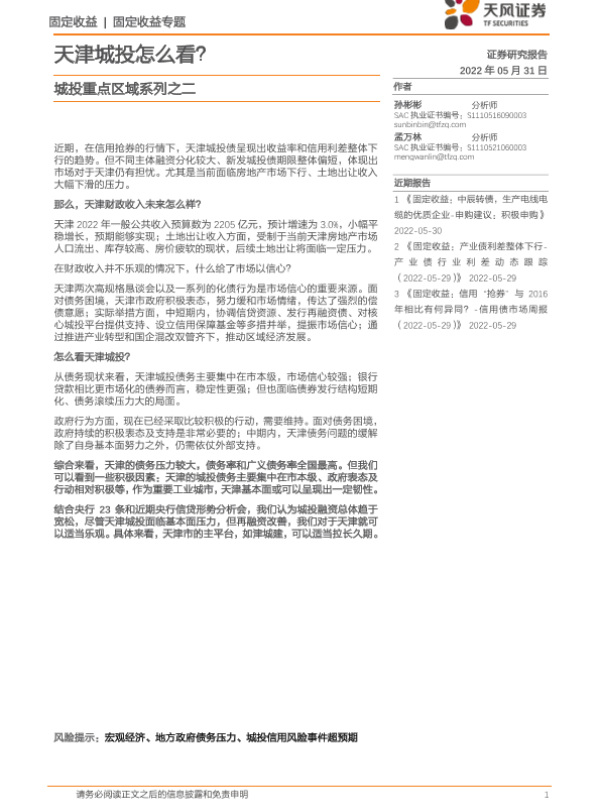 【天风证券】【20220531】城投重点区域系列之二:天津城投怎么看?-18页