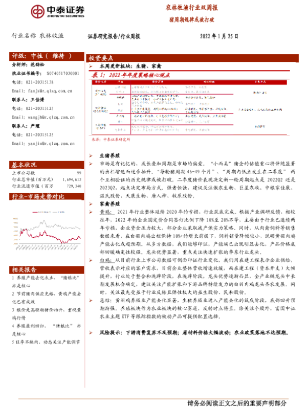 【中泰证券】【20220125】农林牧渔行业双周报:猪周期规律或被打破-23页