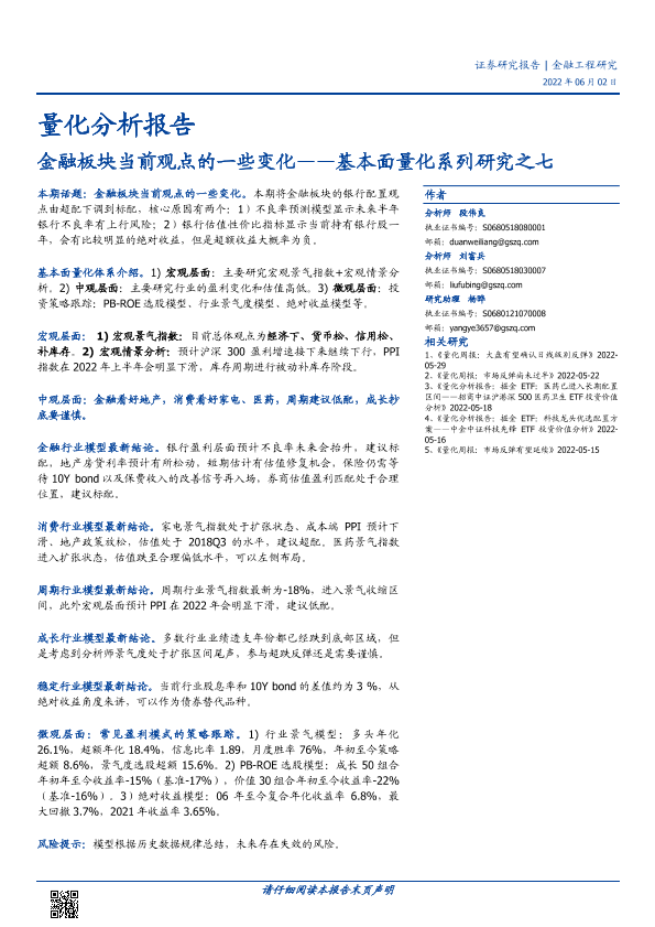 【国盛证券】【20220602】基本面量化系列研究之七:金融板块当前观点的一些变化-22页