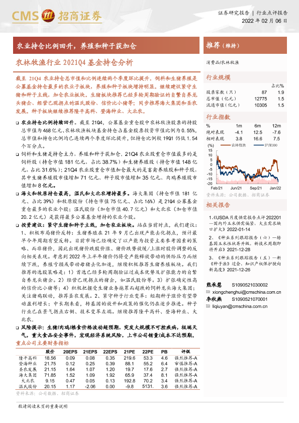 【海通证券】【20220206】农林牧渔行业2021Q4基金持仓分析:农业持仓比例回升,养殖和种子获加仓-7页