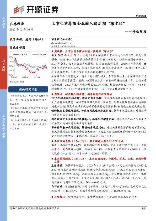 【开源证券】【20220206】20220206-开源证券-农林牧渔行业周报:上市生猪养殖企业驶入猪周期“深水区”-15页