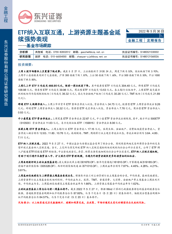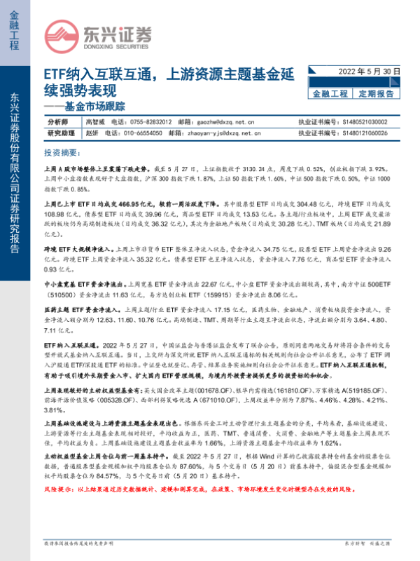 【东兴证券】【20220530】基金市场跟踪:ETF纳入互联互通,上游资源主题基金延续强势表现-18页