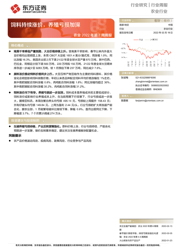 【东方证券】【20220219】农业2022年第7周周报:饲料持续涨价,养殖亏损加深-8页