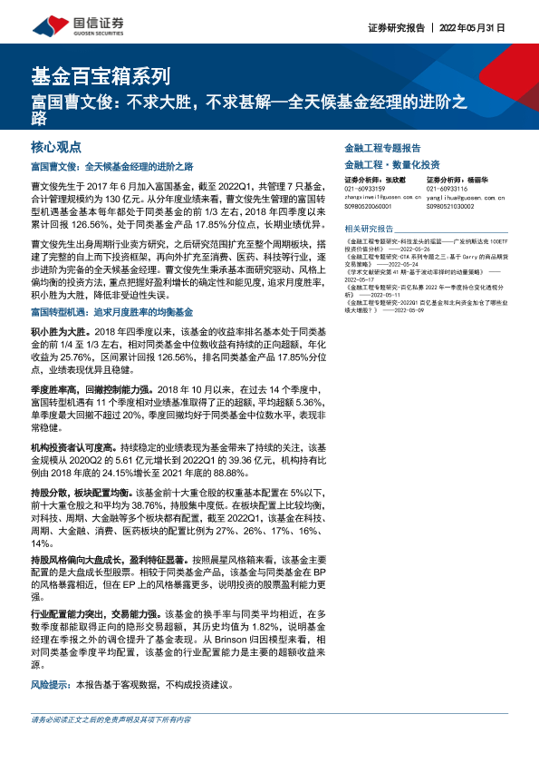 【国信证券】【20220531】基金百宝箱系列:富国曹文俊,不求大胜,不求甚解_全天候基金经理的进阶之路-26页