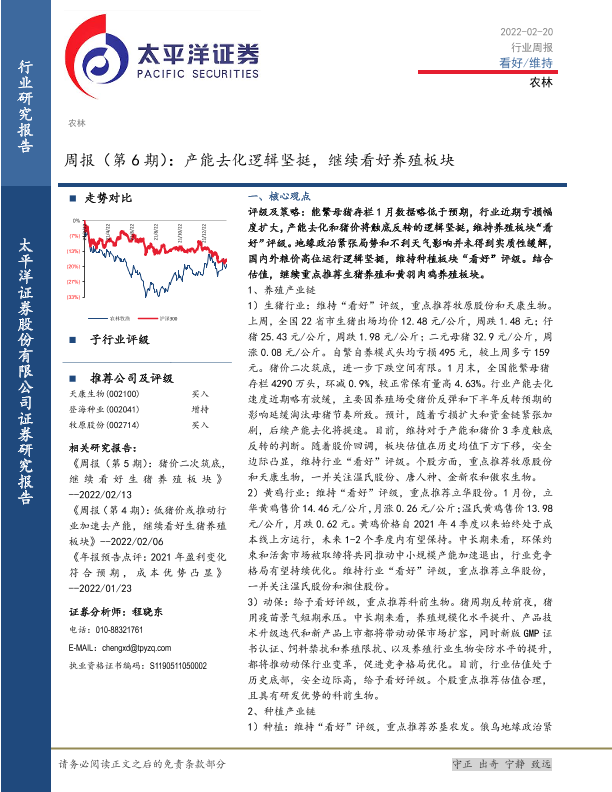 【太平洋证券】【20220220】20220220-太平洋-农林周报(第6期):产能去化逻辑坚挺,继续看好养殖板块-16页