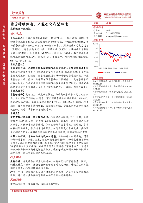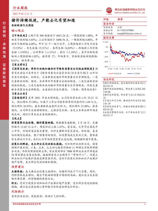 【东亚前海证券】【20220221】20220221-东亚前海证券-农林牧渔行业周报:猪价持续低迷,产能去化有望加速-17页